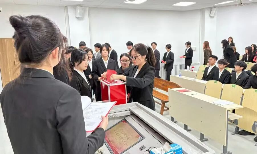 大会选举过程中,各位代表有序将选票投入选票箱,选举出我院第五届学生委员会委员和出席第六次学生代表大会的代表。